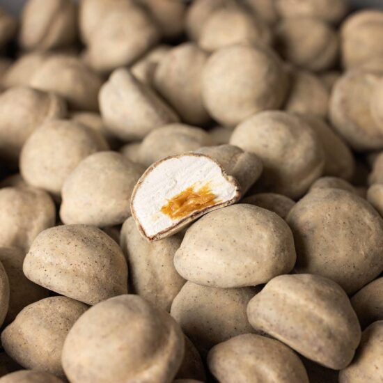 Laat je verrassen door deze onweerstaanbare combinatie van smaken en texturen. Deze luxe marshmallows zijn gevuld met een zachte, vloeibare karamelkern en omhuld met romige Belgische witte chocolade en een vleugje karamel.